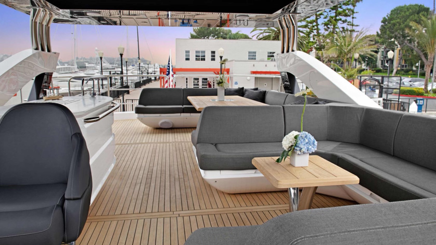 2. Open Deck Areas: The yacht typically offers expansive deck spaces, perfect for sunbathing, entertaining guests, or simply enjoying the panoramic views. There might be a flybridge, aft deck, and a forward sunbathing area.